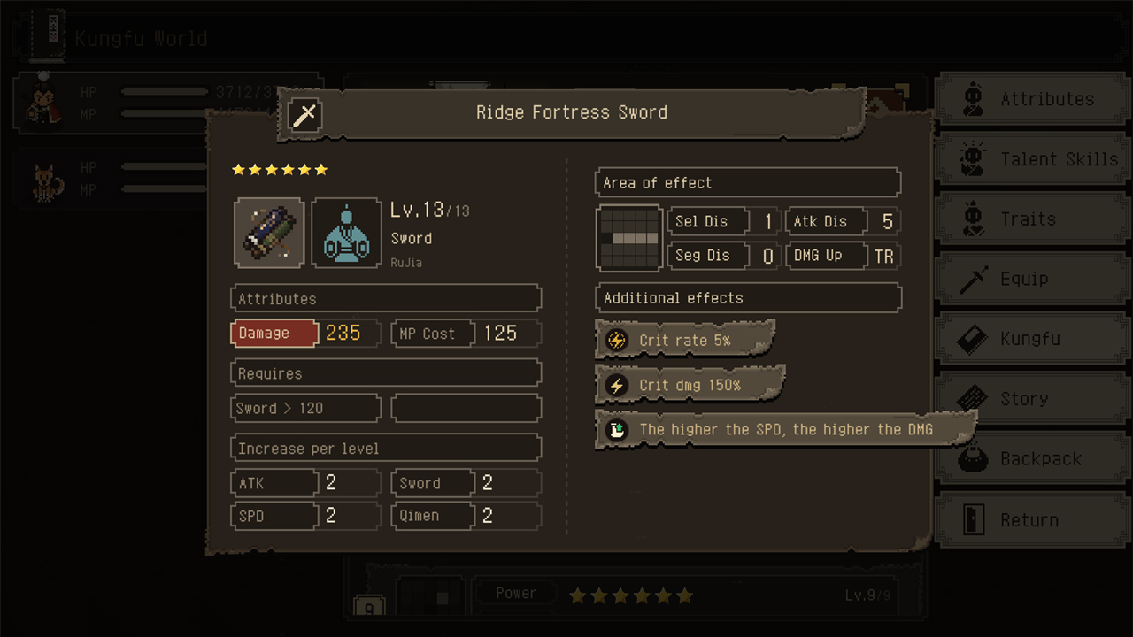 Một trò chơi kiếm hiệp cổ điển với các tính năng tương đương: thăng cấp nhân vật chiến lược, chiến đấu theo lượt và quan trọng nhất là hệ thống nhân vật đa dạng và một câu chuyện hấp dẫn, chân thành.